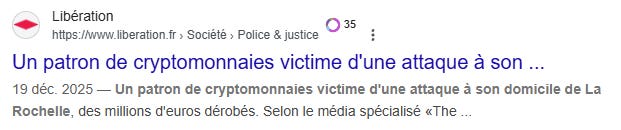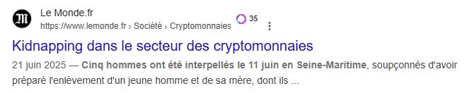 La majorité des agressions physiques liées aux cryptomonnaies commencent par de l’OSINT basique : l’attaquant sait que tu as de la crypto ET où tu habites.